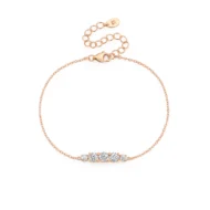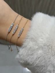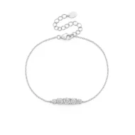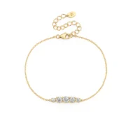 צמיד עדין ואלגנטי בעיצוב נשי ונקי, עשוי שרשרת עדינה וקלאסית, במרכז הצמיד משובצות חמש אבנים עגולות ונוצצות, המסודרות בדירוג ויוצרות מראה הרמוני, קלאסי ומלא ברק.