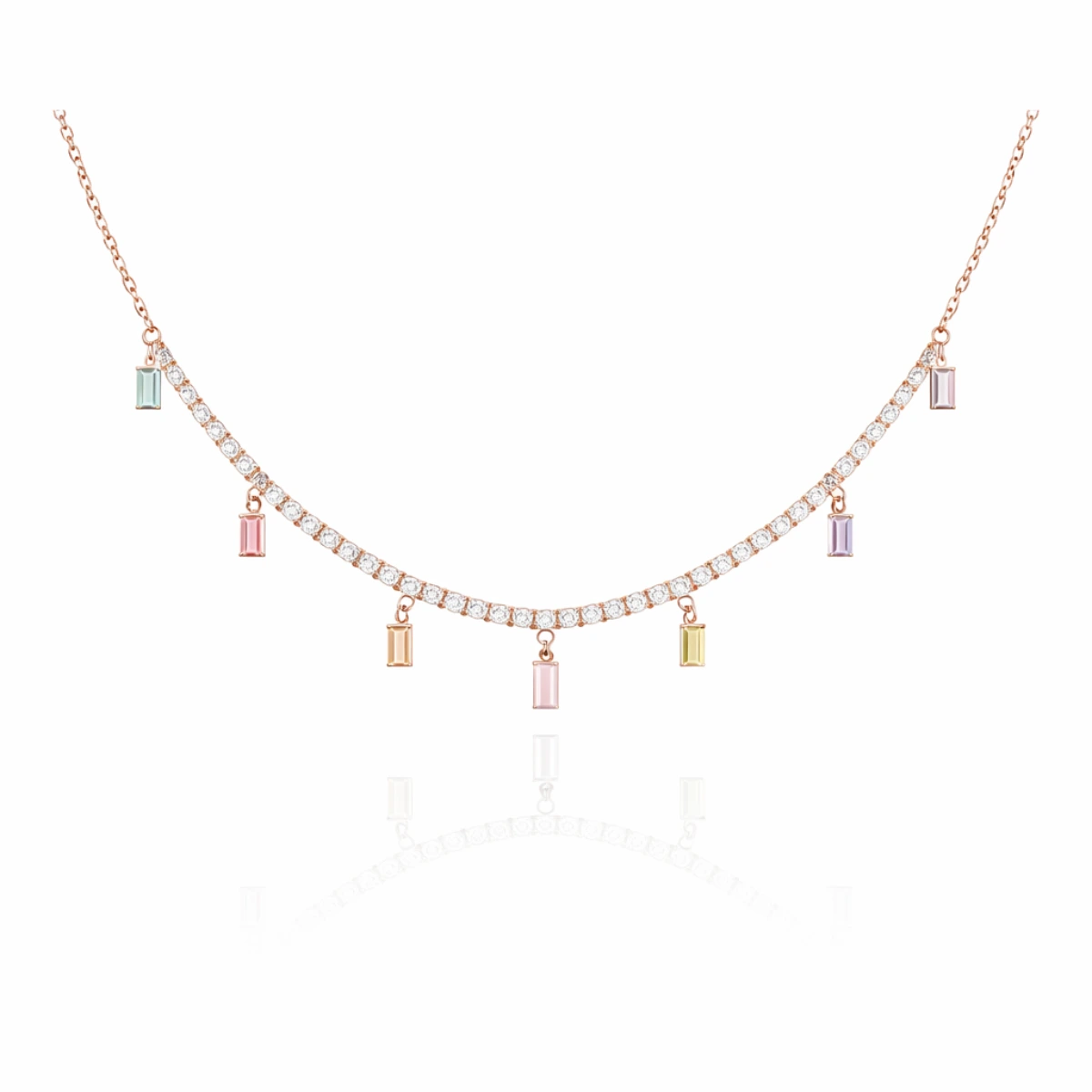 שרשרת הלרי, שרשרת טניס עם תליונים משובצים אבני חן צבעוניות בחיתוך בגט.