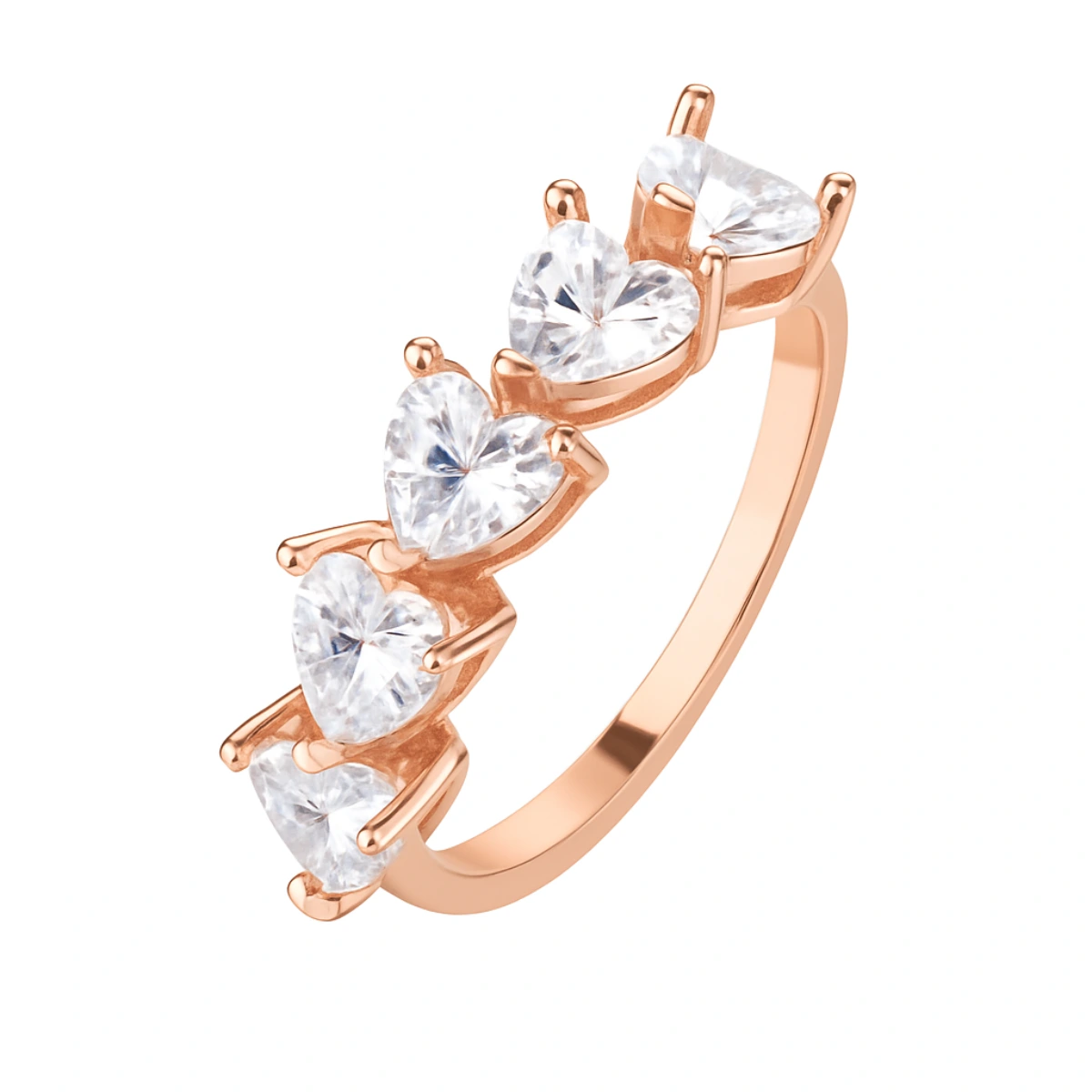 לאורך הטבעת משובצות אבני לב מבריקות, כל אחת בחיתוך מדויק שמעניק להן נצנוץ מרגש ועוצמתי.