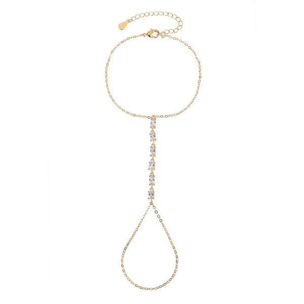 תכשיט יד אלגנטי ומואר, בעיצוב המאורך שמעניק לכף היד מראה נשי, נקי ומלא יוקרה.